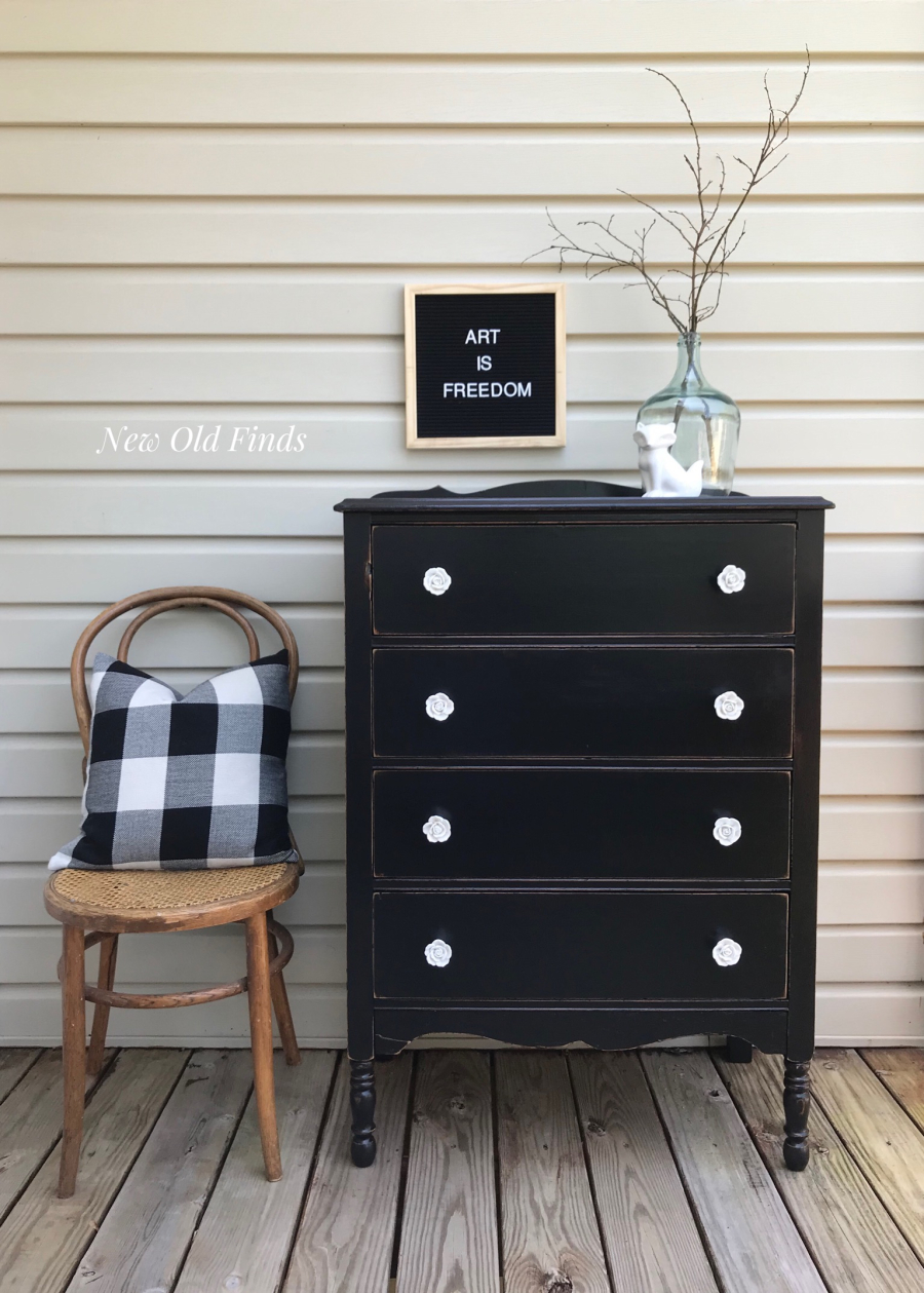 Products used: General Finishes Lamp Black Milk Paint, Minwax Polycrylic Satin Â