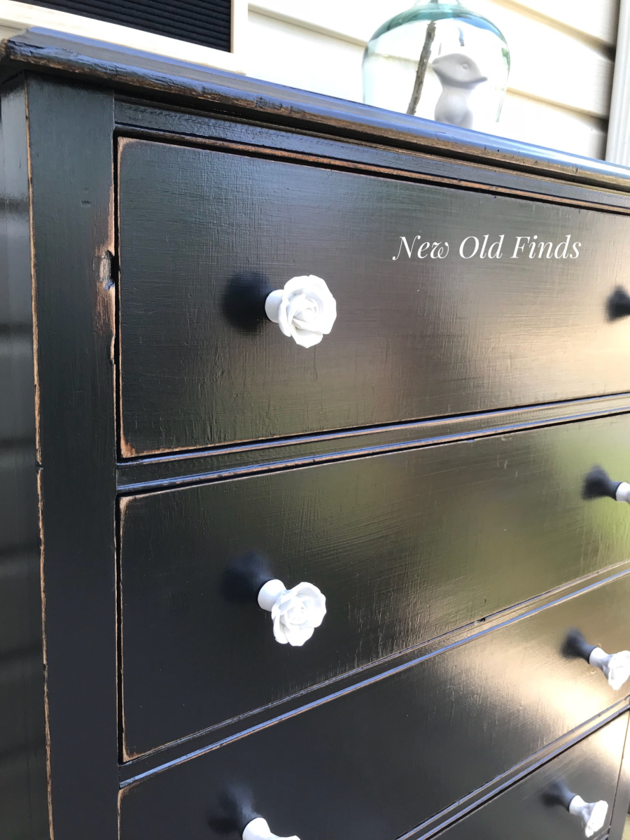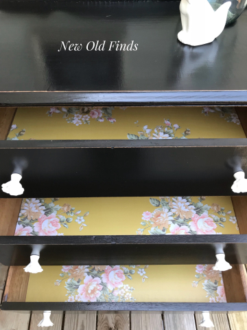 She is so adorable!! The perfect size to use anywhere!! Lamp black has done it again! I love this black and it was perfect on this little chest of drawers and really makes the gorgeous floral pulls pop and compliments the fabulous mustard yellow lined drawers!Â