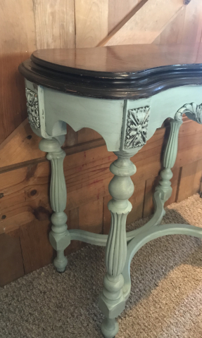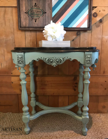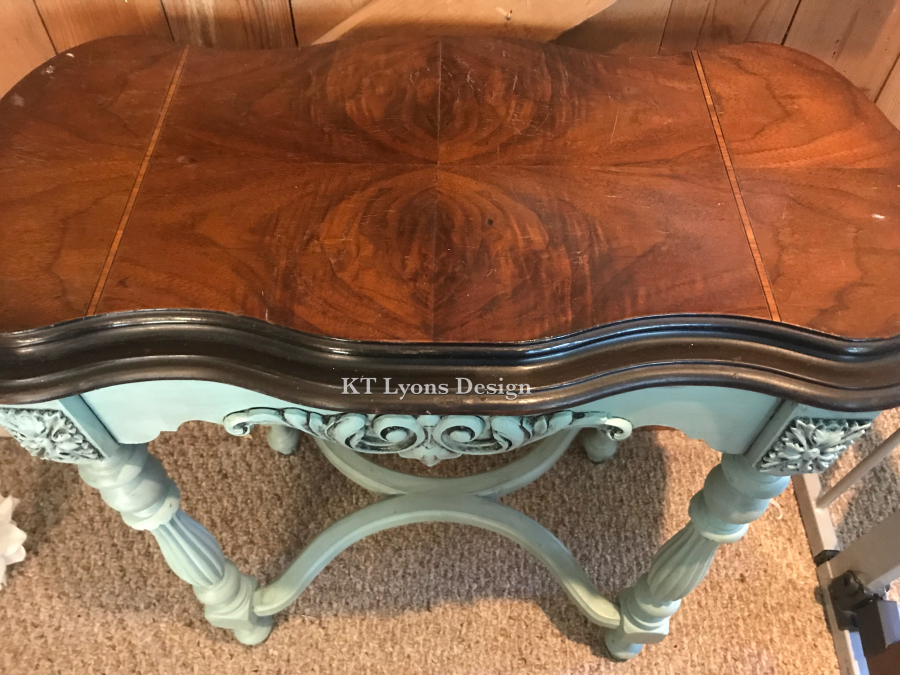 This small table boasts an enormous amount of beauty! The unique shape for starters. Not square, not rectangle, not oval, but it’s own unique shape. The subtle turquoise color melts into every inch of the detail. The glaze overlay coats the turquoise perfectly, enhancing the smallest of details. The top of this table is nothing short of incredible. The burl wood will stop you in your tracks! The tones and richness of the wood is breathtaking! It is the icing on top of the cake. Truly a breathtaking piece!