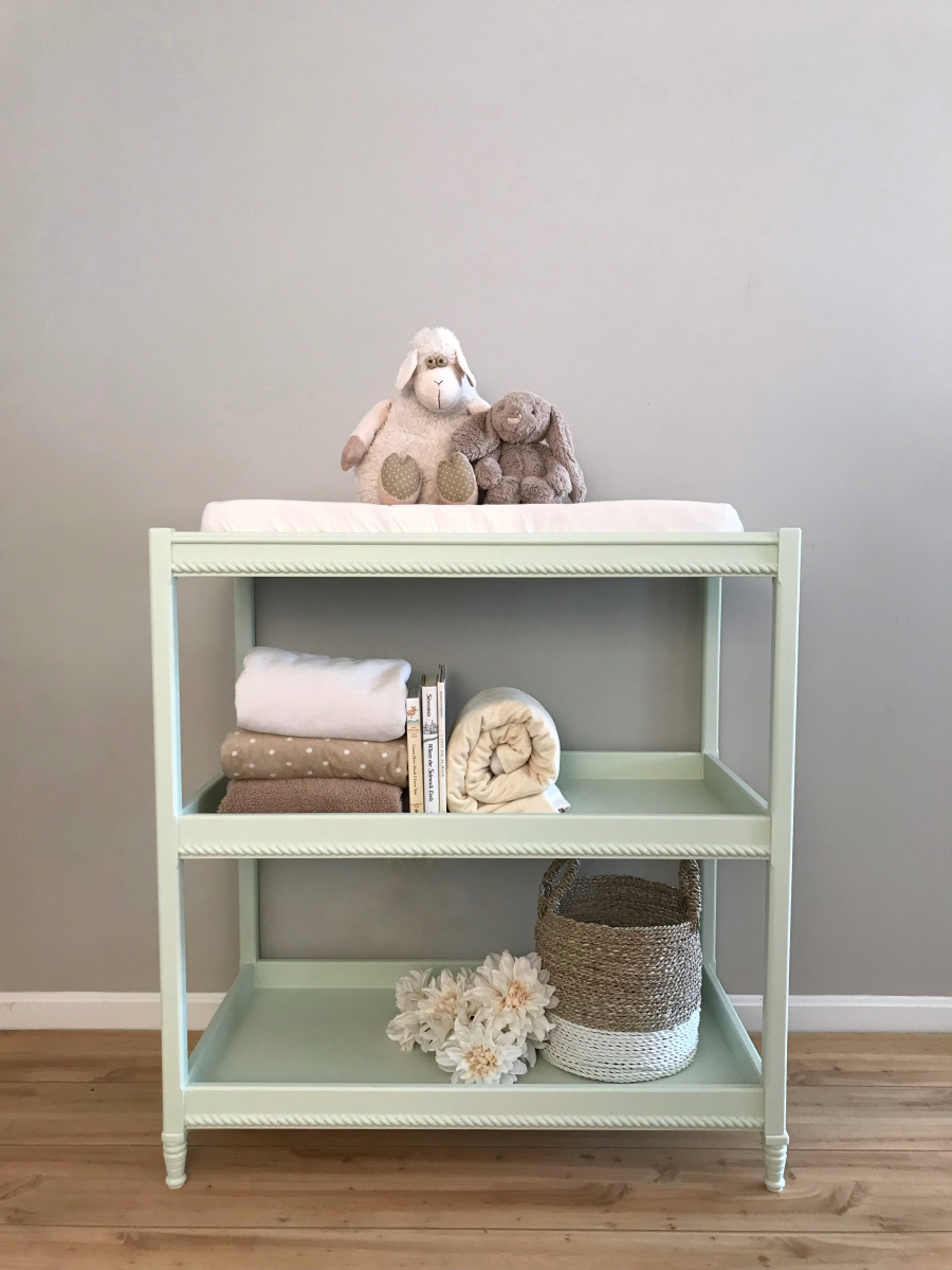 This adorable little changing table was custom designed, built & finished to complete our client's nursery!  Dan finsihed off the project by adding a few special details like the rope moulding to add a bit more interest to the piece then it was painted in a pretty light green!