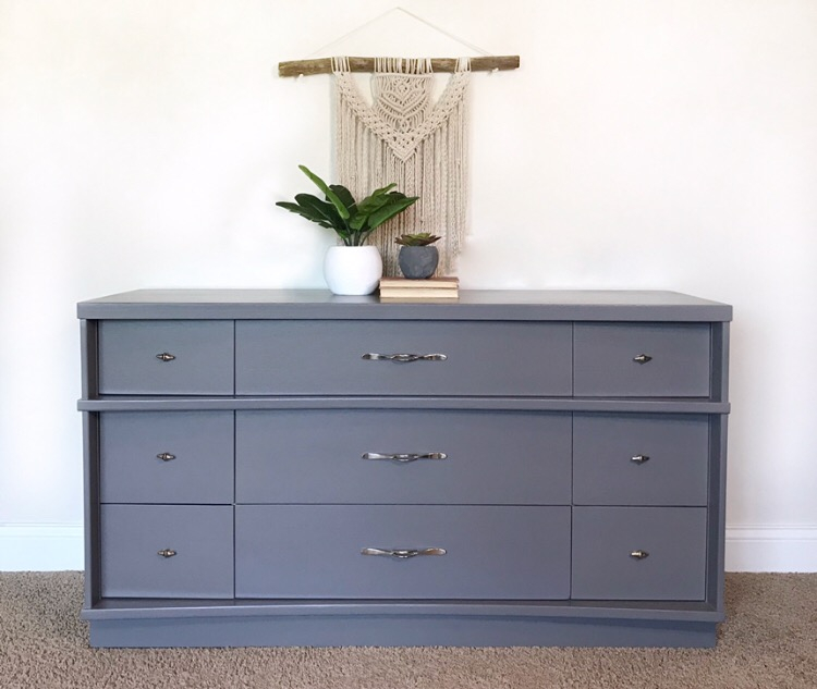 This beautiful Mainline dresser by Hooker was sprayed with General Finishes driftwood milk paint and high performance top coat in satin for the ultimate finish!Â