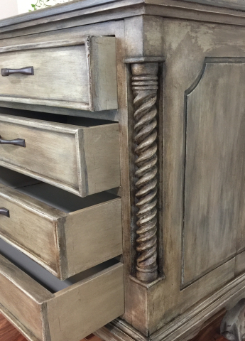 This was a fairly formal piece of furniture In his previous life, but no longer. Elmer was a project that evolved and evolved with each layer. I began with no plan and by the end, I was smitten and Elmer had won my heart. Probably one of my most favorite pieces that I have done and wished I had kept. Hope you love him too.