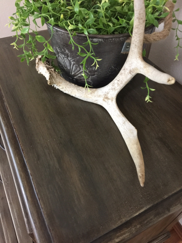 - Annie Sloan products in Old White, Coco, Graphite and sealed with dark and black waxes