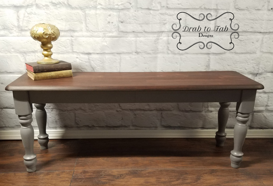 Quaint farmhouse bench, refreshed with GF Brown Mahogany stain and Driftwood Milk Paint.Â