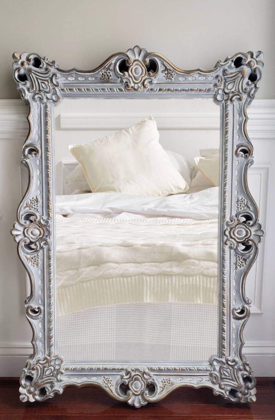 Elegant makes a comeback with this mirror that was transformed from boring bronze to something one woud find in France using Seagull Gray Milk Paint, a wash of French Vanilla and dry brushing as well with gilding wax applied along raised areas and details in Gold Leaf, Ebony and Silver. Sealed with High Performance Top Coat in Flat.Â
