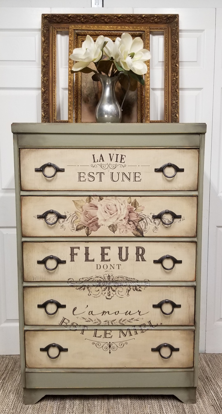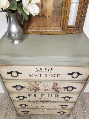 - Dixie belle dried sage, Spanish miss, burlap, transfer by redesign with prima