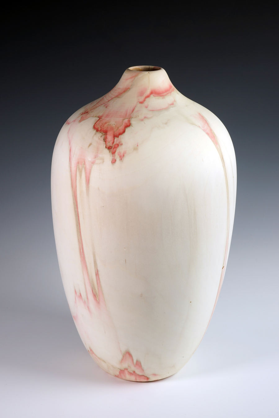 This is a large hollow form that was turned from Box Elder wood, bleached and finished with a clear matte acrylic.