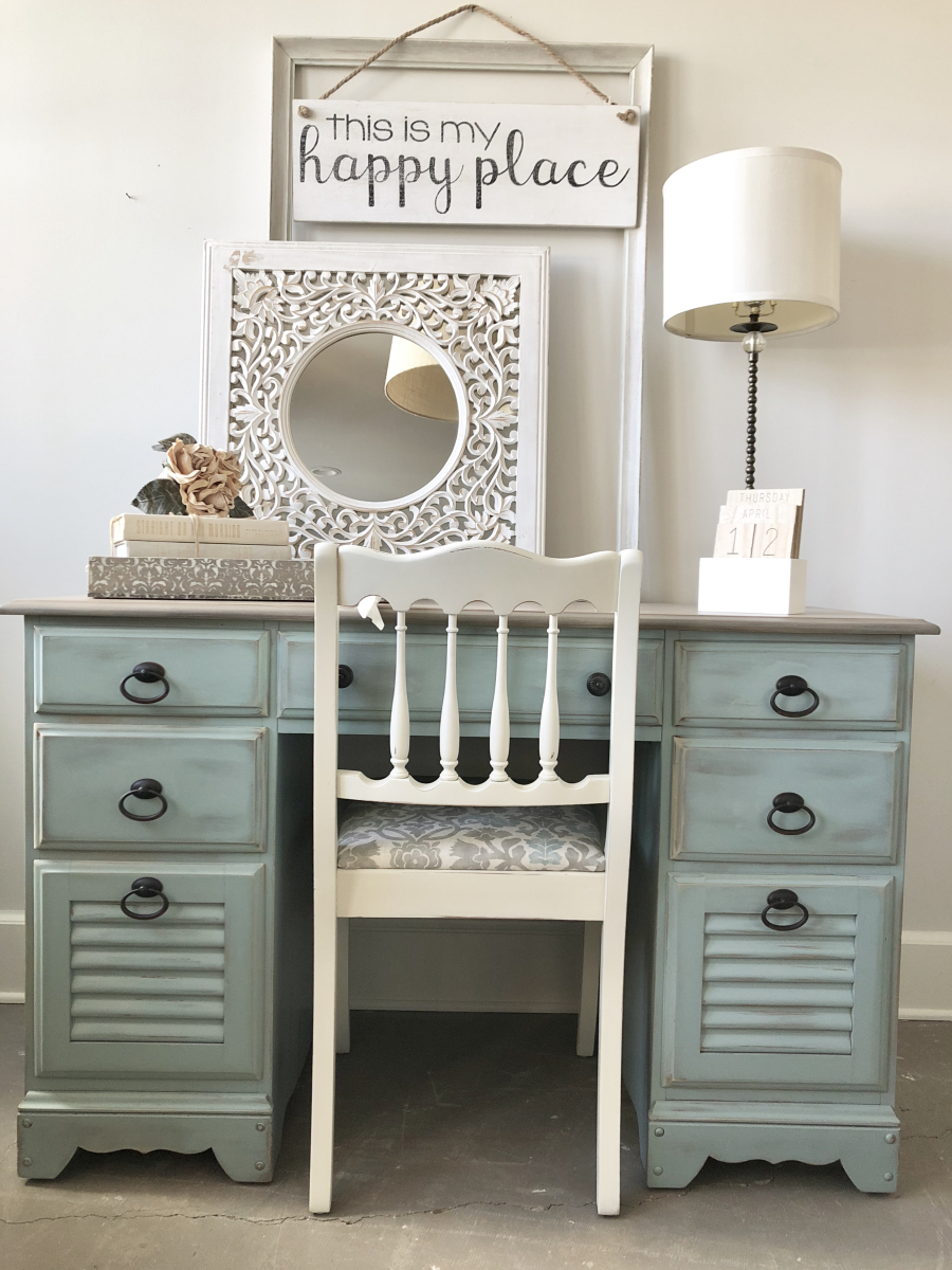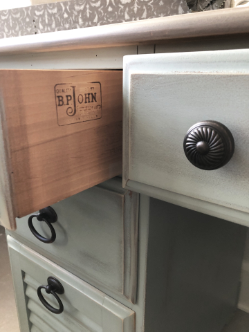 Vintage Desk manufactured by B.P. John Furniture Company has received a coastal makeover.Â