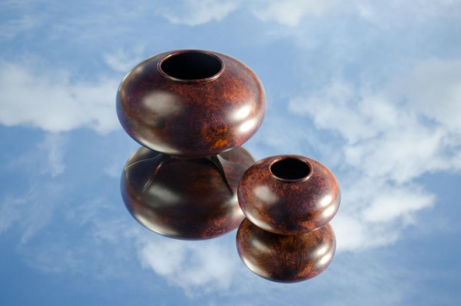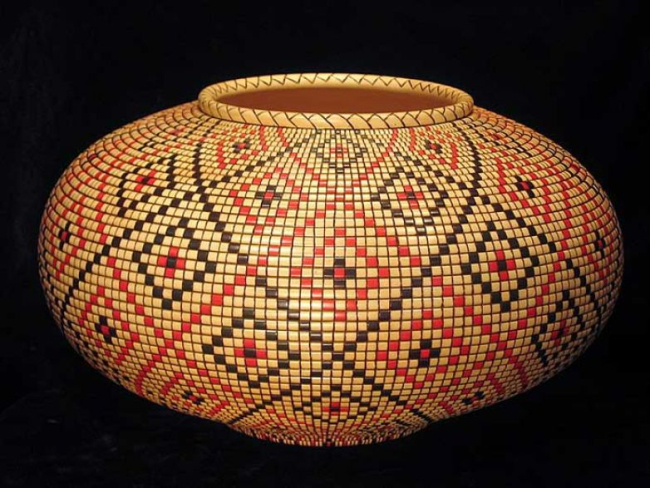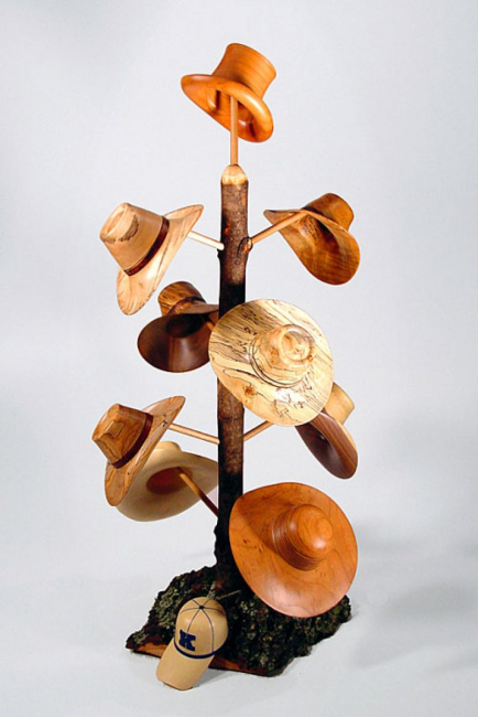 Chris Ramsey is a woodturner from Somerset, Kentucky who has been turning wood for 25 years. Chris is best known for his turned and carved sculptural bowls as well as wearable wooden hats. "I visited a store in Old Town, Berea, KY, and spotted a beautiful natural edge bowl made by a local artist named Rude Osolnik; that was the spark that lit the fire in me to pursue woodturning as a hobby." Since then, Chris's work has been exhibited in galleries, craft shops, private collections, corporate collections, permanent collections and museums in North America, South America, Asia, Europe and Africa. In 2003 he was invited to the White House by President George W. Bush for a ceremony in the Oval Office to present the sitting President with one of his turned wood cowboy hats.