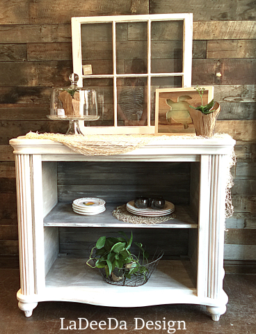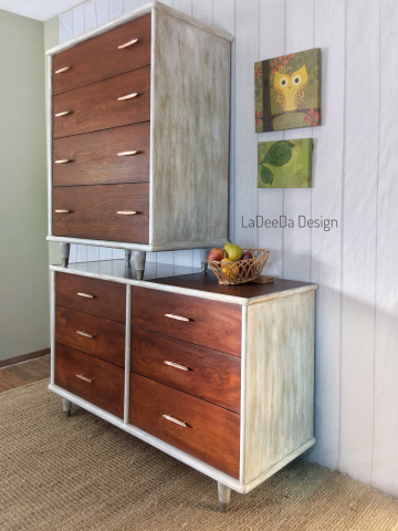 This sweet Chest began its life as one half of a Waterfall Vanity. It was separated from its better half years ago. I say "better" because I'm asssuming the other half and three good working drawers. This one was missing a drawer. Not a problem!