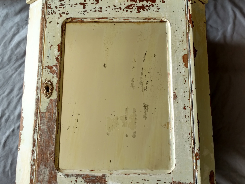 Spotting an ad in the local buy/sell group, I snagged this piece that was stated to be from the 1970s. Knowing furniture, I knew the construction/design was much earlier than said era. It had been painted, and painted, and painted, then decals stuck on to embellish! Oh My! Hauled it home, with the help of my faithful husband..began stripping away layers upon layers of paint - then sanding...