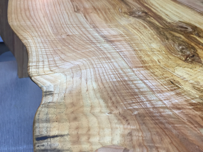 To finish this table a sanded every surface to a 400 grit with a festool rotary sander and hand sanded the curved pieces between the legs. I broke the hard edges with a block plane and with sandpaper. I finally sprayed it with a satin conversion varnish, I sprayed two coats and lightly sanded it between them. I wanted to show of the beautiful color and naturally occuring medullary rays of the...